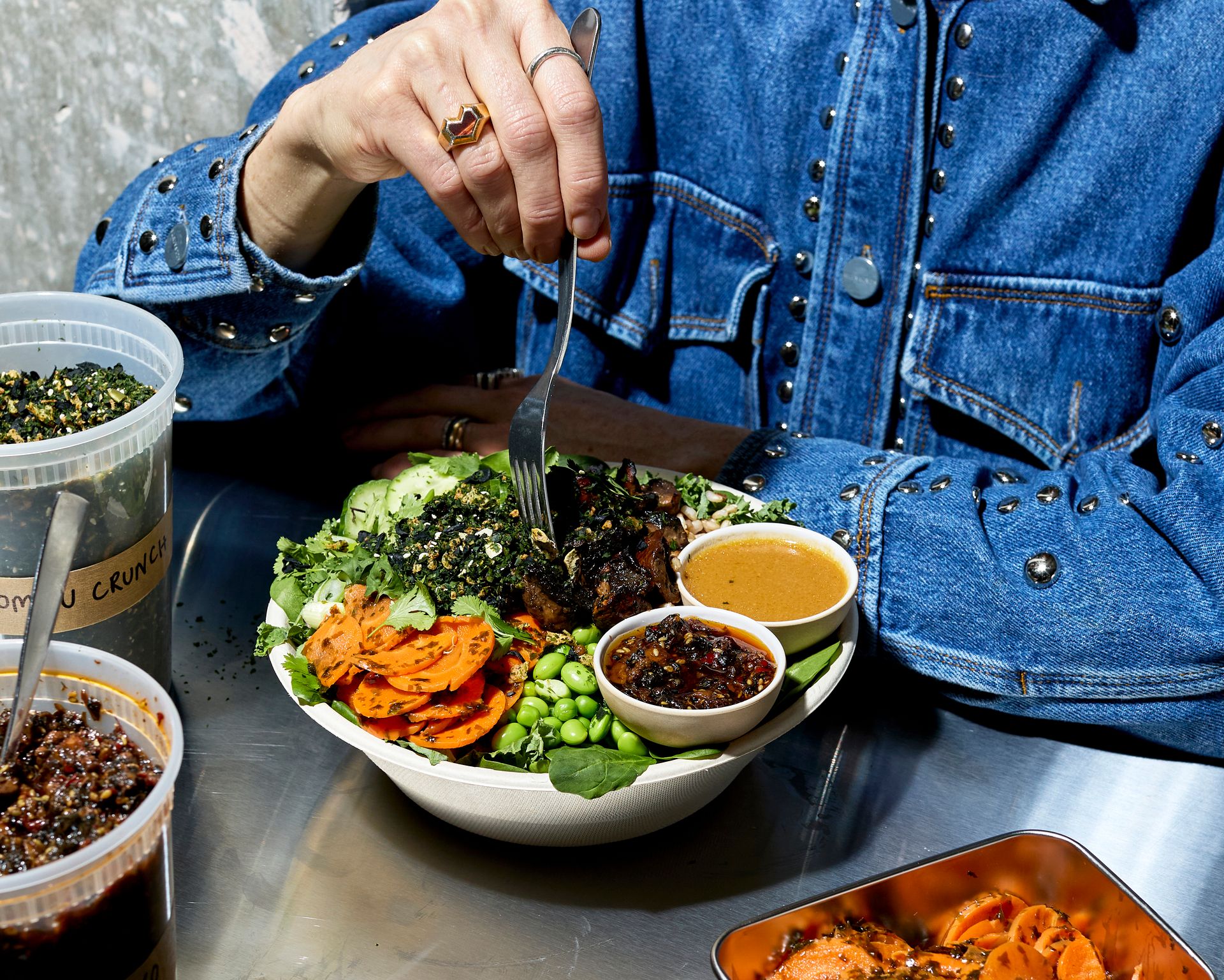 Brighten up your day in the office with this nourishing bowl from lunchtime favourite atis, made in collaboration with plant-based restaurant Holy Carrot. The umami-rich dish sees a base of wholegrain rice and greens layered with mushrooms, spring onion and miso ponzu dressing, packed with fermented and pickled ingredients for a gut health boost. Order at atis.life